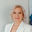 Женщина в районе 50 лет сидит на кресле и улыбается в камеру в голубом пиджаке.